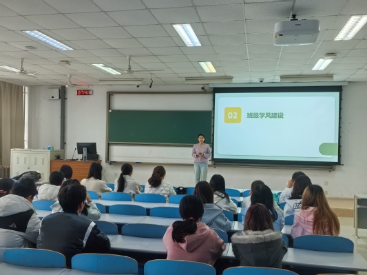 随后,班会进入班级学风建设与学习经验分享环节。学习委员王若羲围绕班级学风建设与班级成员展开探讨。她结合上学期班级总体成绩情况,针对班级成员们所提出的期末复习阶段效率低下等问题,与大家共同探讨了压力释放与学习提升的方法。王若羲提倡大家通过散步等方式转移注意力、缓解焦虑,合理规划复习节奏。与此同时,她也鼓励大家在反思中进步、不要畏惧困难,将成绩作为根本保障。