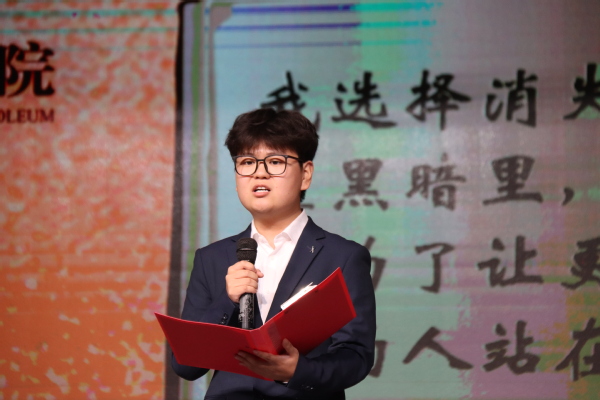 第三篇章里,罗蓉蓉以自强为笔,书写当代学子的奋斗篇章。她分享了自己克服学业与生活双重压力实现成绩逆袭的奋斗经历,讲述了四川支教授课、内蒙古家乡开设非遗手工课的文化传承经历。当被问及如何向孩子们传递坚韧精神时,她说:“支教时,有个孩子说‘老师,我想像你一样走出大山’,那一刻我明白了,自强不仅是改变自己,更是点亮他人。”这些跨越3000公里的奉献足迹,化作坚韧向上的生动注脚。最后,她朗读《青年知青岁月》,激昂文字化作强劲的东风,鼓起青春奋进的风帆,激起全场学子投身时代的澎湃热情。