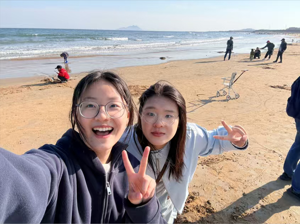 学生“晒太阳”留影