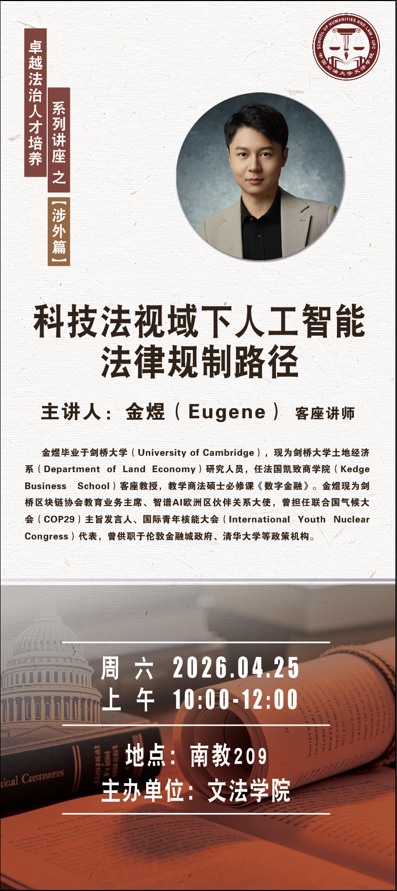 【卓越法治人才培养系列讲座】科技法视域下人工智能法律规制路径
