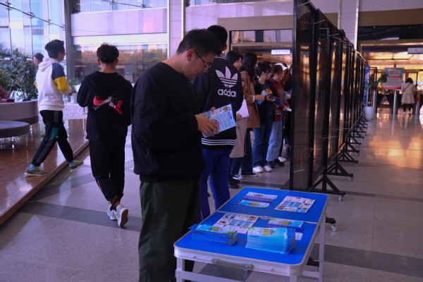 “人生再成功,沾毒一场空。”下午三时的图书馆大厅布置齐全,精彩的介绍吸引了许多学生前来观看。展览从什么是毒品、毒品的危害、青年与毒品、法律与毒品和毒品的预防五方面展开。“毒品有多种危害,不仅仅是身体健康,还会传播疾病、祸害家庭。”正平普法协会副会长宋雪贤为参观者详细介绍了毒品的相关内容。“许多伪装成零食、饮料的新型毒品,悄悄潜伏在大家的周围。生命只有一次,我们要进一步提升对新型毒品的认知防范能力,对毒品说‘不’!”